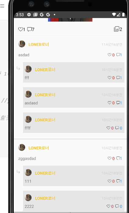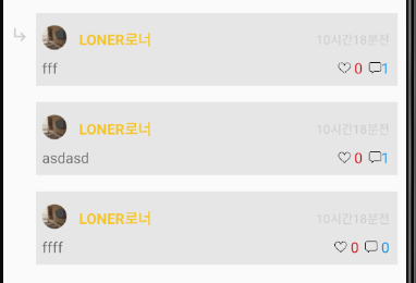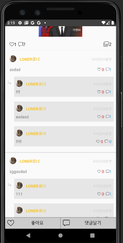 *댓글의 댓글 리사이클러뷰에서 댓글의 댓글의 댓글은 일렬로 아이템이 생성 표시 되도록 할겁니다.