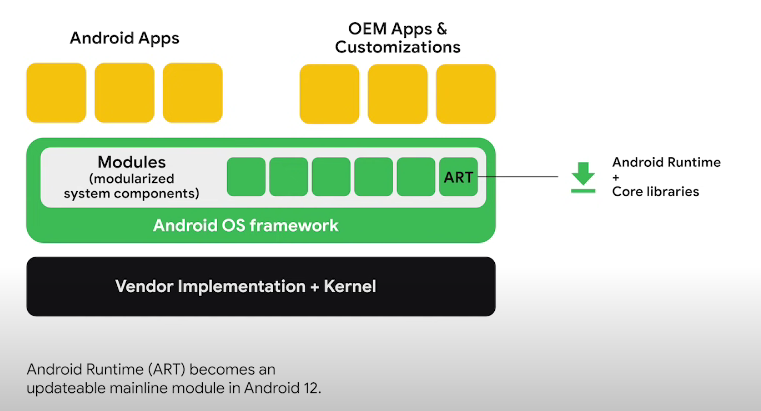 -ART 안드로이드 12부터 업데이트 가능한 메인라인 모듈이 됨
