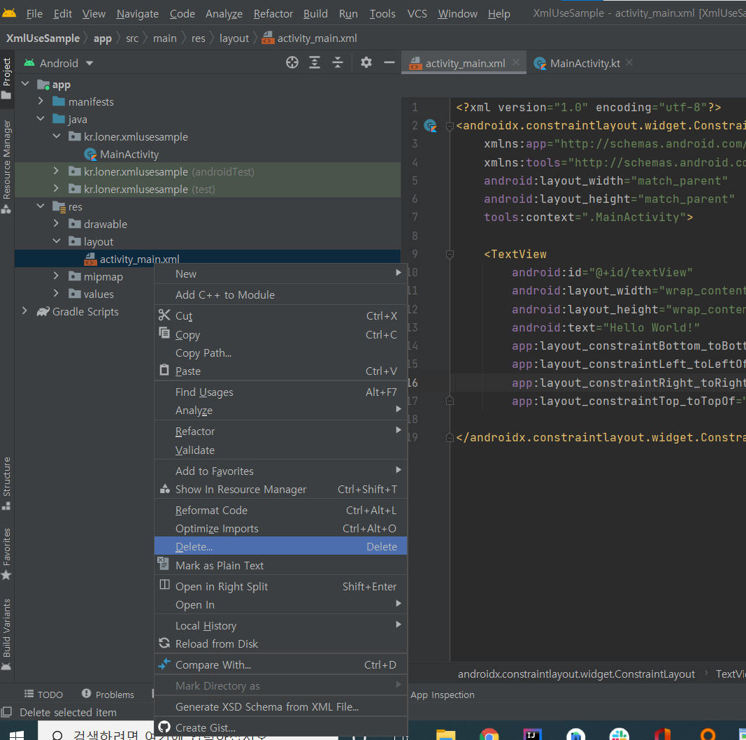 2) xml를 제거해줍시다.