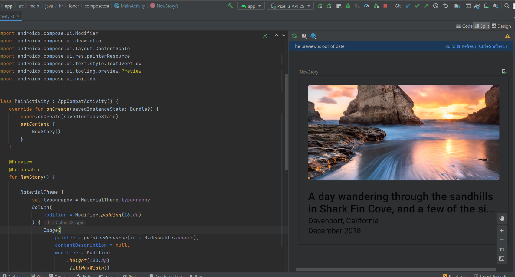 3) Compose는 직관적인 코드로 UI를 만들 수 있음