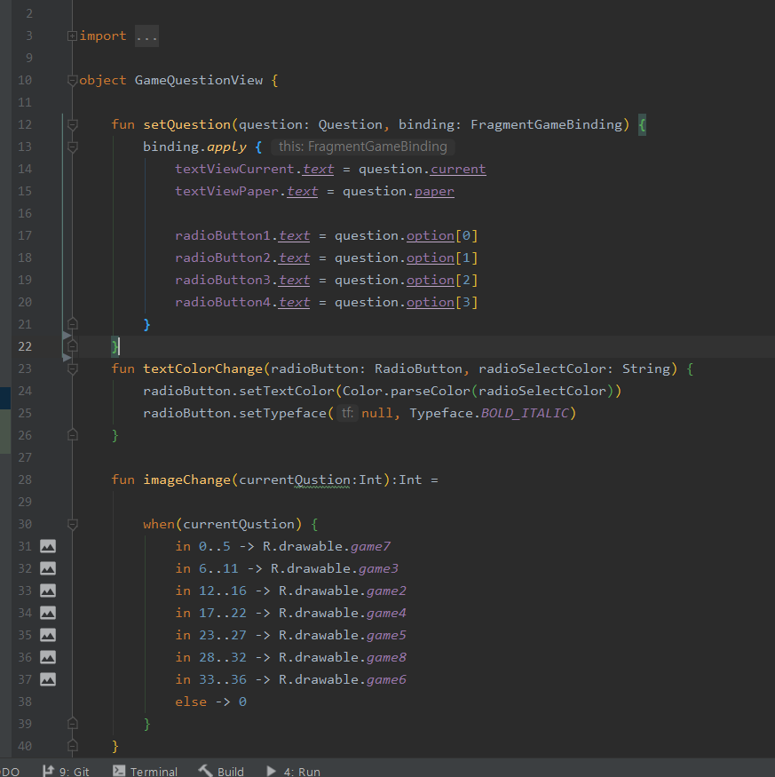 이 앱은 네트워크에서 db를 가져오는게 아니라서 마음 편하게 미리 고정된 정답과 답을