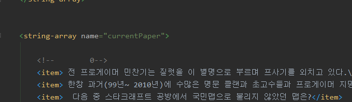 안드로이드 스튜디오 string.xml 에 문제와 정답들을 string Array형식으로 다 담아놓고