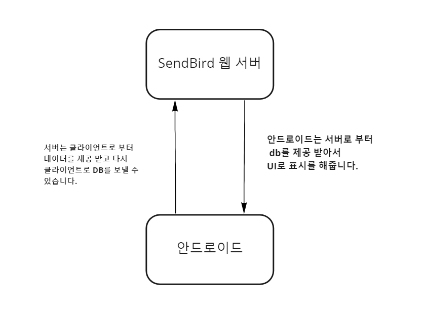 위에 설명한것과 같이 SendBird는 매우 심플한 구조를 가지고 있으며, SendBird에서 자체 서버를 운영하고 있습니다.