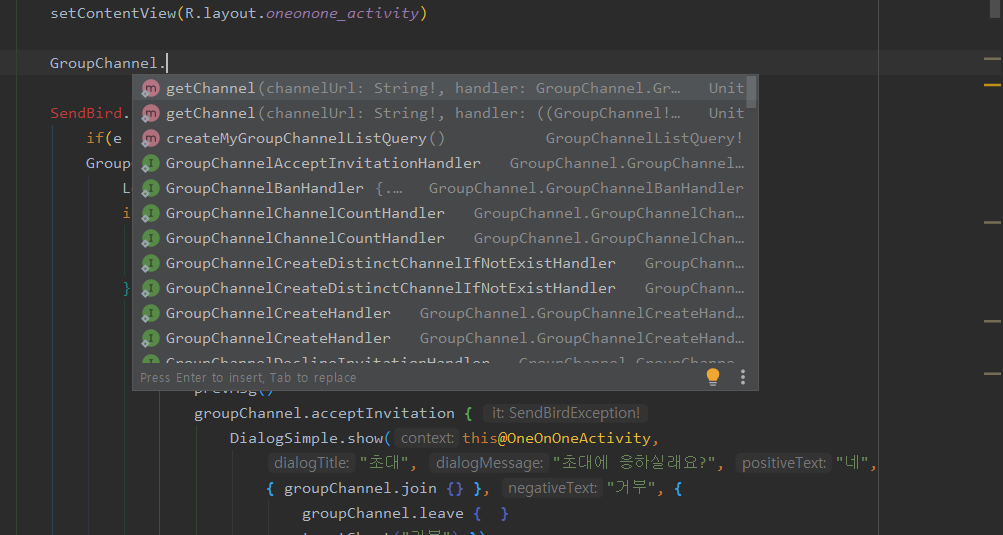 SendBird Chat SDK는 여러가지 CallBack 함수를 지원해주면서