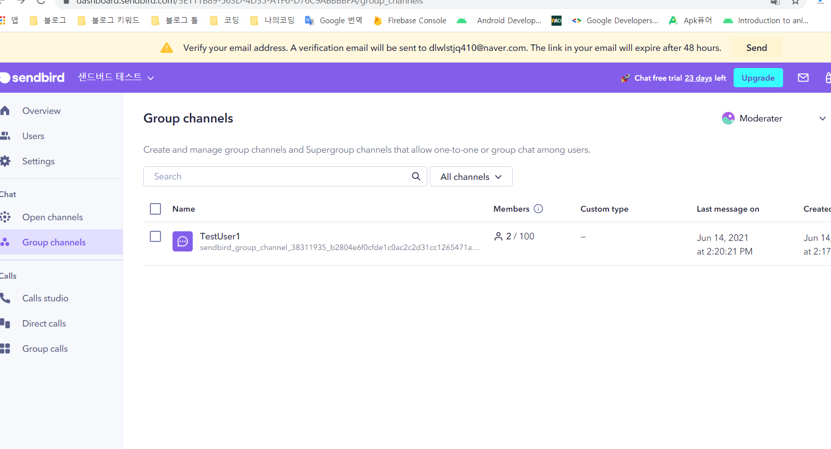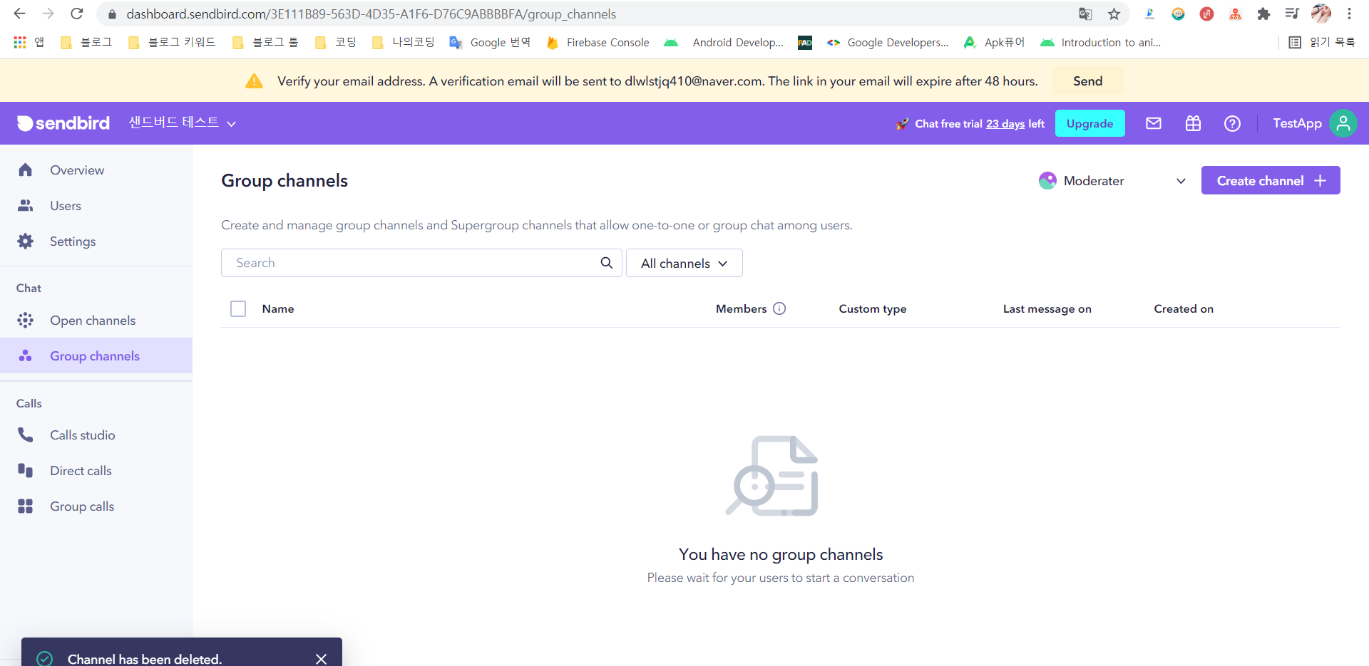 그런 다음 좌측 사이드에 Group channels 를 눌러서 해당 페이지를 켜놓고 안드로이드 스튜디오로 이동해봅시다.