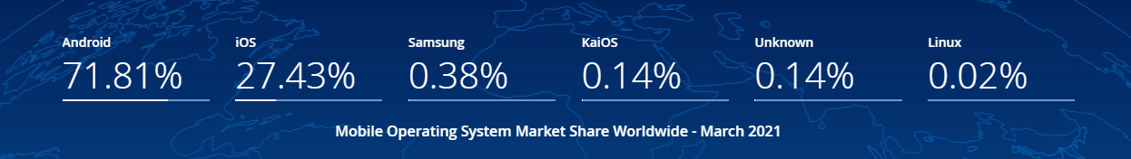 하지만 안드로이드에서 빼놓을 수 없는 매력은 개방적이라는 것 입니다. 제조사, 개발자들에게 전체적으로 Open이 된 시스템이라서 관련 전문가라면 누구든지 어렵지 않게 접할 수 있는것이 안드로이드고 개방형이라는 특징으로 시장을 잡았고 현재 모바일 OS 점유율71.82%를 차지하고 있습니다.