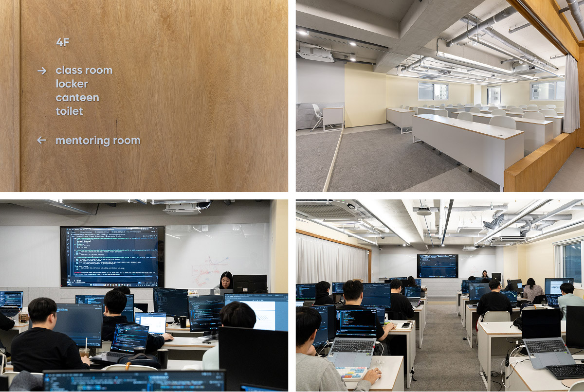두번째로 놀랐던 점은 강사님 뿐만아니라 운영진분들이 상주해계신다는 겁니다. 운영진분들이 수업외에 전체 프로세스를 관리해주시면서 체계적으로 잘 진행이 되고 있구나를 느꼈습니다. 또한 운영진분 중에 커리어 코칭 강사님도 계십니다. 커리어 코칭 강사님 6개월 내내 학생들의 이력서나 포트폴리오에 대한 면담 및 수업을 알려주십니다.